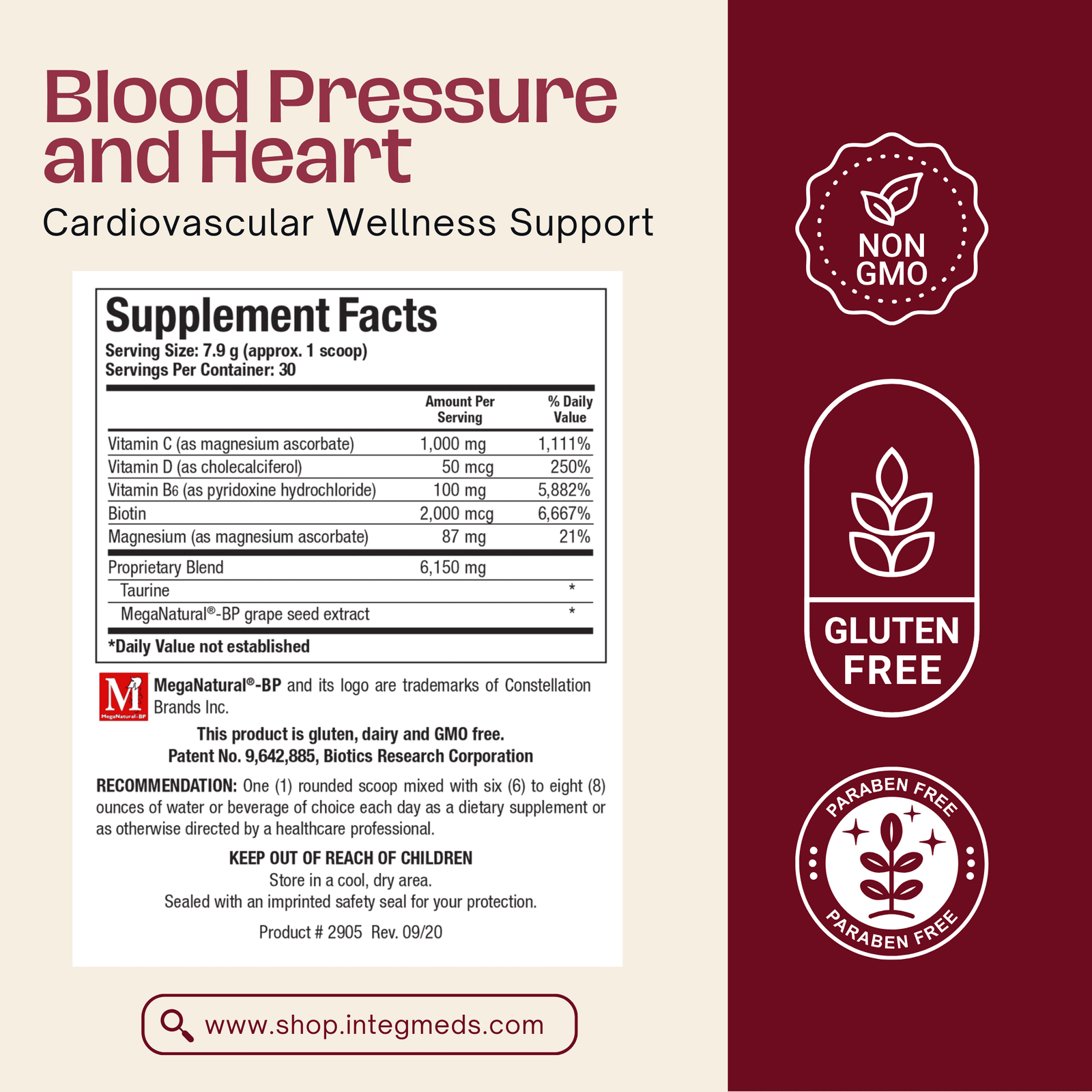 Like all INTEGMEDS products, Blood Pressure & Heart is gluten- and dairy-free, ensuring safe and effective supplementation. Each batch is rigorously tested in our lab to guarantee purity, potency, and consistent results.
