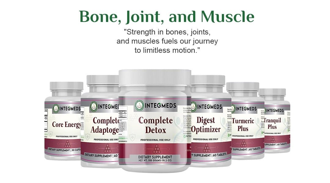 Bone, Joint, and Muscle- Vital Magnesium, Core Energy, Tranquil Plus, Digest Optimizer, Turmeric Plus, Complete Adaptogen, Complete Detox.