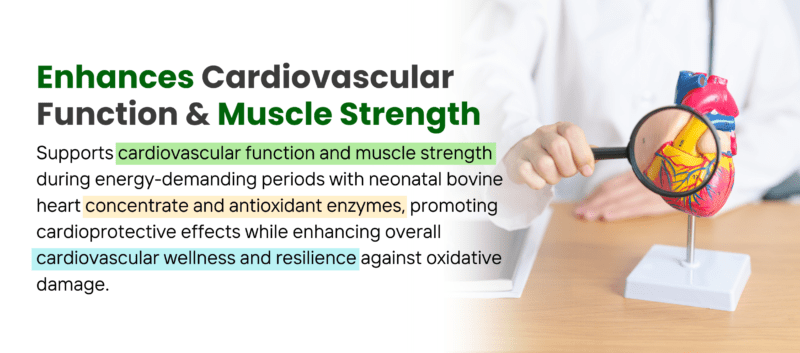 Cardio PMG is an essential nutrient for supporting cardiovascular health. Containing neonatal bovine heart concentrate that helps support cardiovascular health, it also helps build muscle strength during times of high energy demand.