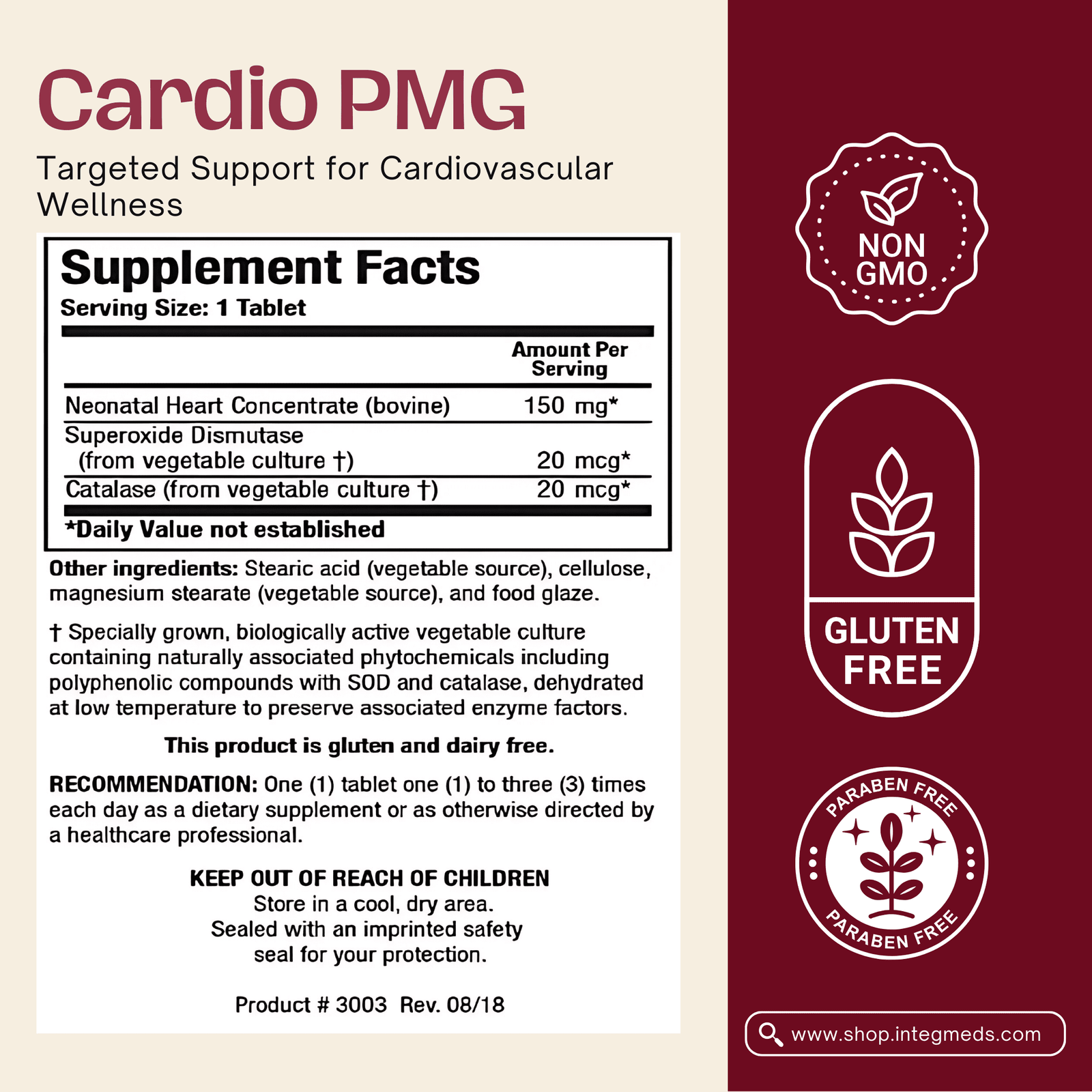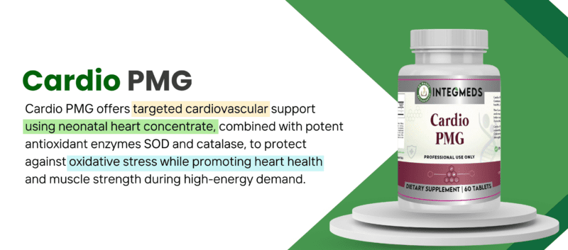 The Cardio PMG is a nutritional formulation that supports cardiovascular health and muscle strength. It is made with neonatal bovine heart concentrate that helps support the cardioprotective effects of high-energy demand periods, and it also helps build muscle strength during times when you need to get moving.