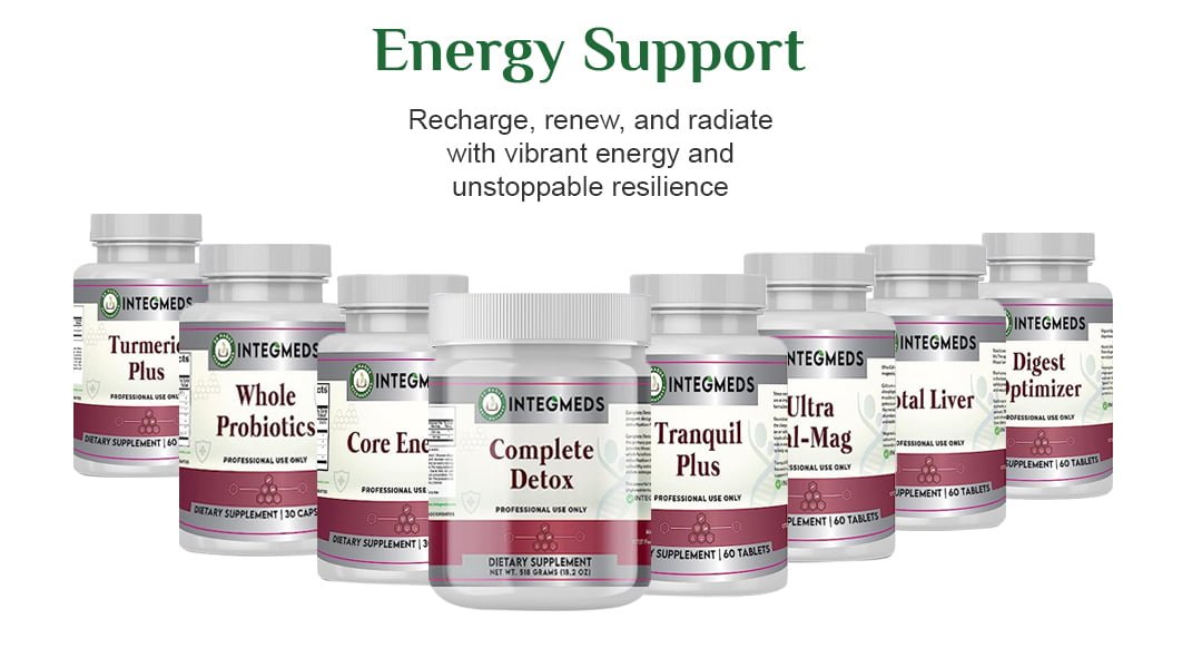 Energy Support: Core Energy, Tranquil Plus, Digest Optimizer, whole probiotics, Total Liver, Turmeric Plus, Ultra Cal-Mag, Complete Detox,