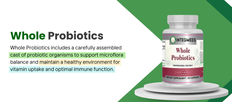 Whole Probiotics includes a carefully assembled cast of probiotic organisms to support microflora balance and maintain a healthy environment for vitamin uptake and optimal immune function.